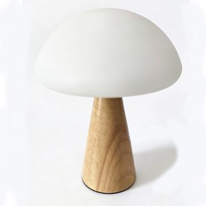 This table lamp features a cute mushroom-shaped silhouette, blending natural minimalist aesthetics with functional lighting. Its natural wood grain base and white frosted glass shade make it a perfect decorative piece for modern, Scandinavian, or bohemian interior styles, adding a touch of warmth and whimsy to any space.