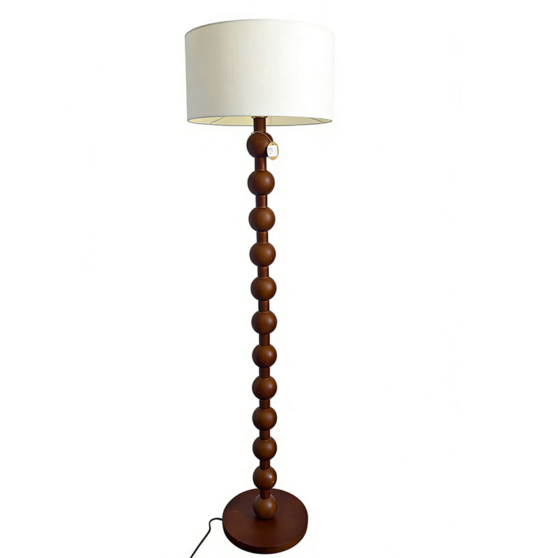 This floor lamp features a unique sculptural wooden bead stem, combining artistic visual appeal with functional lighting. Its natural wood finish and classic white drum shade make it a perfect statement piece for vintage, bohemian, or mid-century modern interior styles, adding warmth and texture to any living space.
